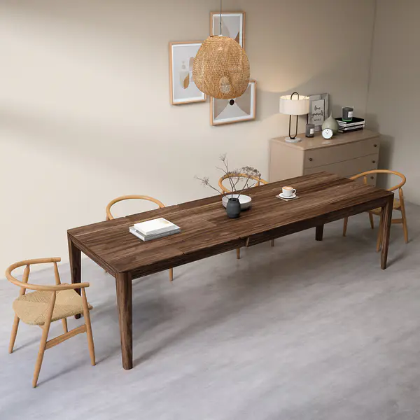 An der ausziehbaren Seite sind die Beine mit Rollen ausgestattet, damit diese beim Ausziehen sehr leicht über den Boden gleiten. Wenn du den Tisch ausziehst, kannst du die Auszugsplatten dank der angenehmen Führung mühelos mit einer Hand ausklappen.