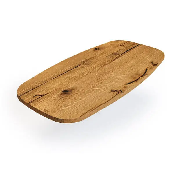 Tonnenform Konfiguriere dir eine tonnenformTischplatte aus Wildeiche oder weiteren Holzarten. Tonnenform