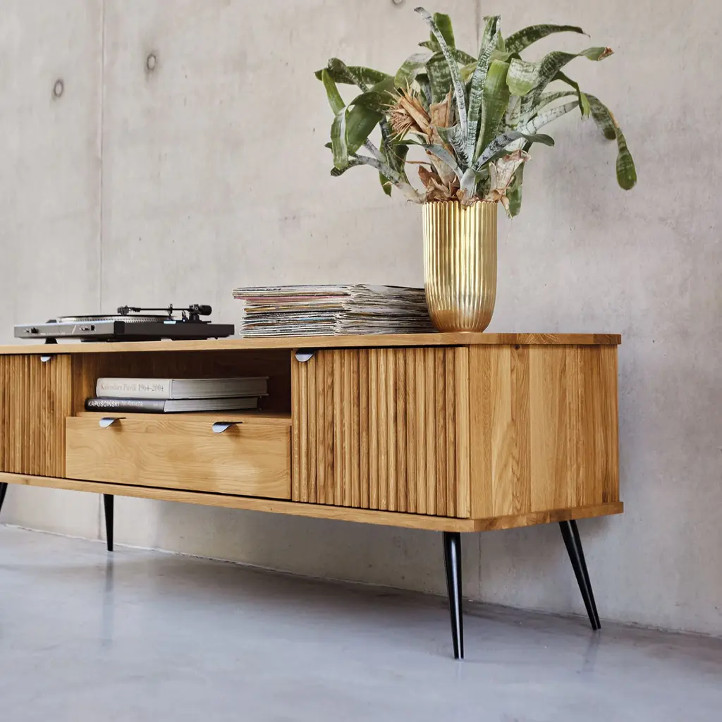 Jedes Sideboard ist durch die individuelle Maserung und Farbgebung des natürlichen Holzes einzigartig.
